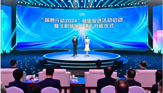 近日,由中央广播电视总台联合6部委共同发起的“国聘行动2024”就业促进活动暨《职场第一课》开机仪式,在北京举行。中宣部副部长、中央广播电视总台台长慎海雄,全国妇联党组书记、副主席、书记处第一书记黄晓薇,人力资源和社会保障部副部长李忠,全国工商联副主席方光华,国家开发投资集团有限公司总经理余邦利在活动上致辞,并与共青团中央书记处书记胡盛,中国工程院院士、北京航空航天大学教授苏东林等嘉宾共同开启就业促进活动,为《职场第一课》开机。
