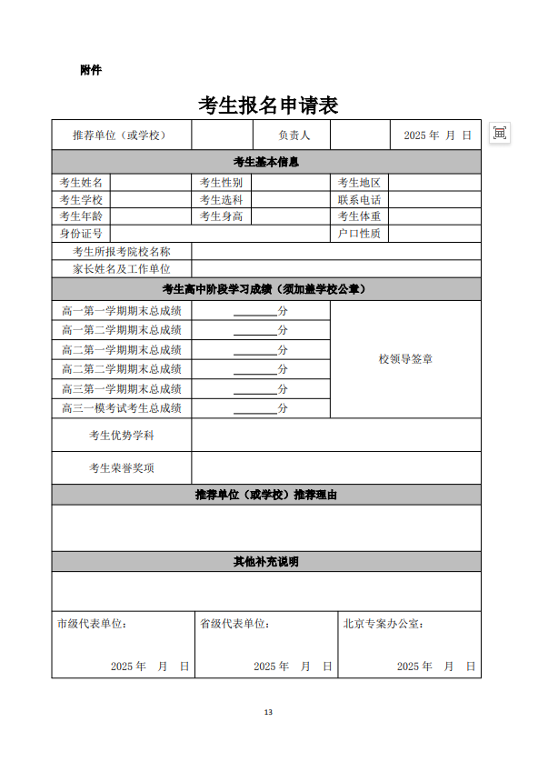 (1)推荐人向北京专案办提交《考生报名申请表》,审核通过后,学生及学生家长到校参加入围面试,面试通过后方可报名。